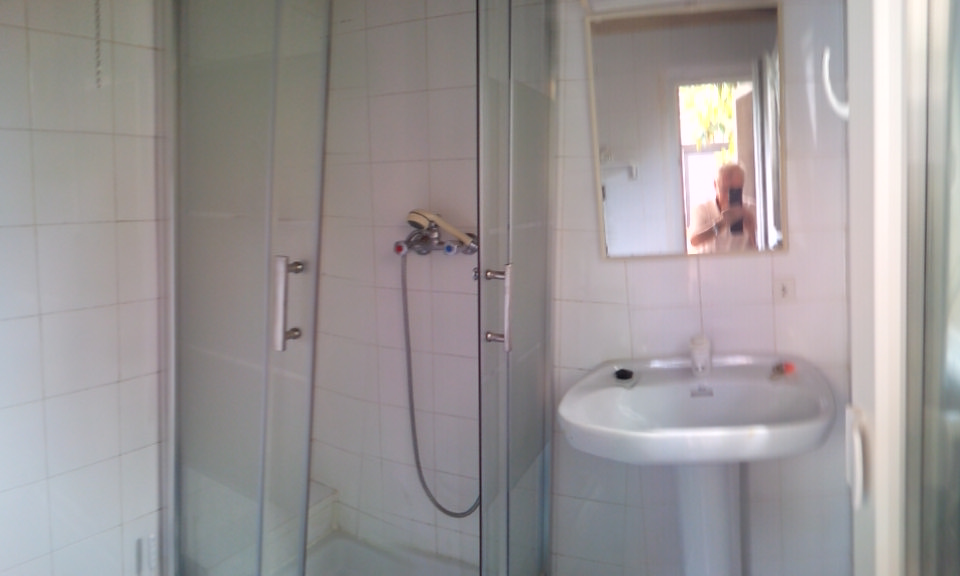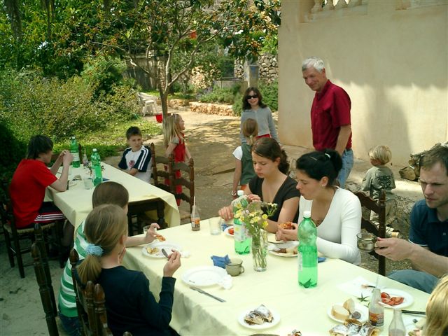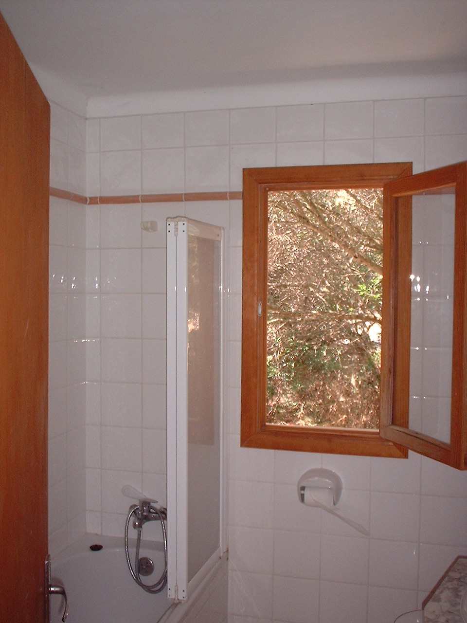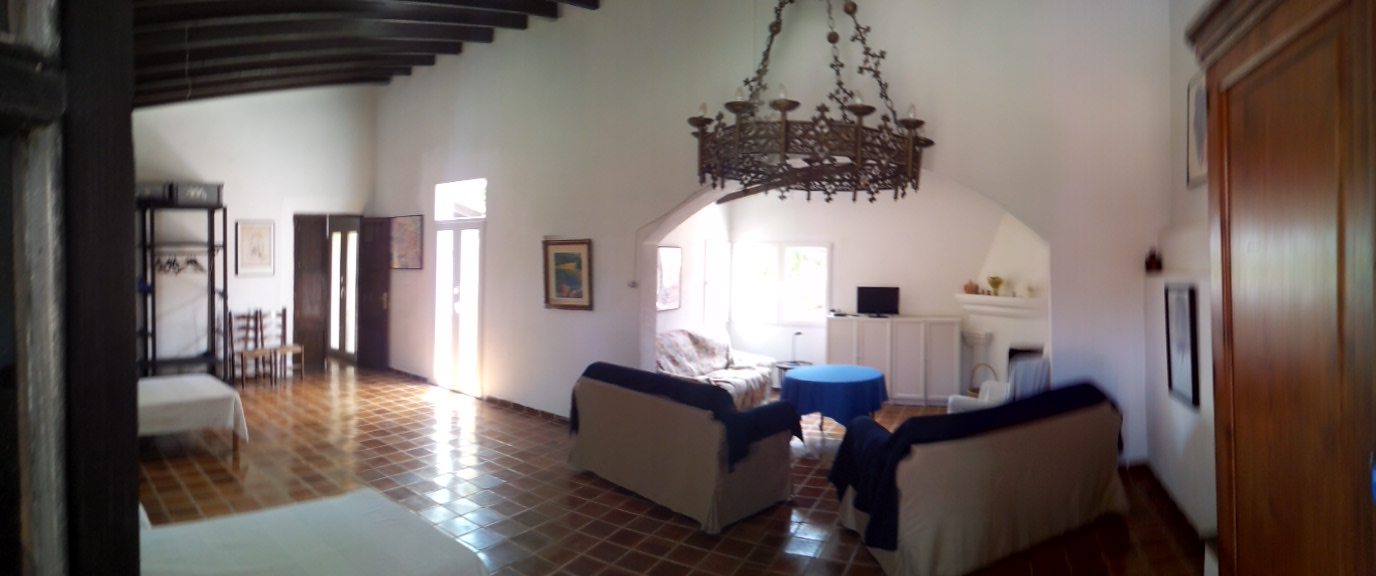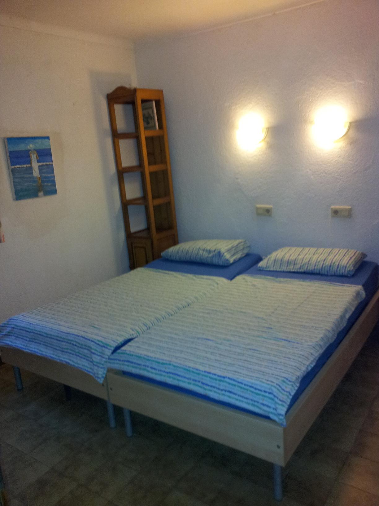 Die Wohnung ist um den großen Saal (mit Bänken, Stühlen und Tischen, Tischtennisplatte) zu vergrößern, so daß bis zu 22 Personen hier untergebracht werden können.Sie hat bis zu 7 Schlafzimmer, 6 Toiletten, 5 Duschen, 2 Küchen, Sat.TV, 2 Kllimaanlagen, Waschmaschine, Mikrowelle, Geschirrspülmaschine, WLAN usw. Die Strom- und Warmwasser -versorgung wird mit Solarenergie (Photovoltaik und Thermosyfon) unterstützt. Die Wohnung Meerblick wurde gerade saniert. Es liegen noch keine Bilder vor.