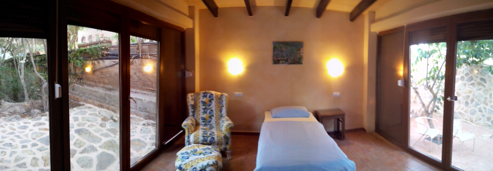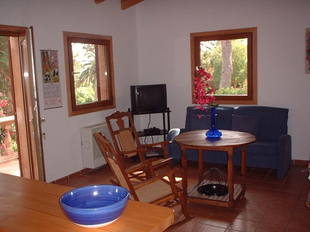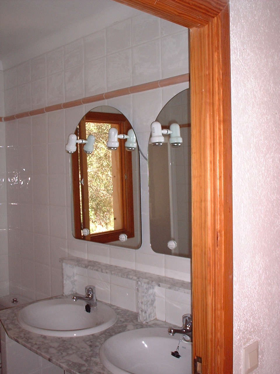 Anfahrt und Lage Wegbeschreibung von Palma Flughafen (ca 70 km): Am besten folgt man der guten Ausschilderung nach Manacor (C715), folgt der C715 weiter in Richtung Arta und Son Servera. Der Weg nach Son Servera geht dann über einen Abzweig (PM-403). In Son Servera biegt man ab in Richtung Cala Millor. Nachdem man durch Son Servera gefahren ist, fährt man am Kreisverkehr in Richtung Porto Christo. Auf der linken Seite sieht man nun schon die Skyline von Cala Millor. Nach wenigen Minuten liegt das Aparthotel Monte Safari ebenfalls auf der linken Seite. Genau gegenüber geht es rechts zur Anlage Tennis Bella Vista. An diesem Abzweig steht auch ein entsprechendes und meist beleuchtetes Schild. Folgt man der Ausschilderung, dann fährt man einen Hügel hinauf und nach einer scharfen Rechtskurve zuerst an dem größeren Landhaus und dann an dem Chalet vorbei. Am Parkplatz vor dem Restaurant der Tennisanlage endet dann die Straße. Das Gästehaus befindet sich im Gelände der Finca unterhalb des Chalet. Wer nachts ankommt, sollte eine Taschenlampe mitbringen. Lage: Das Gelände oberhalb von Bella Vista ist ländlich und überwiegend Landschaftsschutzgebiet. Die Entfernung zum nächsten Supermarkt beträgt ca 1,5 km, zum Strand und zur geschäftigen Fußgängerzone von Cala Millor ca 2 km, zum Hafen Cala Bona ca 4 km, zum Golfplatz ca 6 km. Mit dem Rad kauft man am bequemsten in Son Servea ein, wenn man den Via Verde (ohne große Steigungen) benutzt. Das Landhaus eignet sich besonders für Urlaub von Gruppen und befreundete Familien. Die Beherbergung von ca. 30 Personen ist möglich.